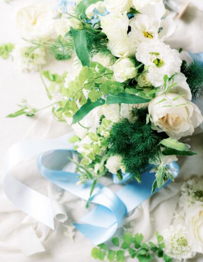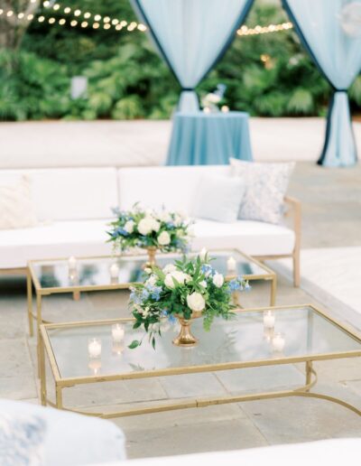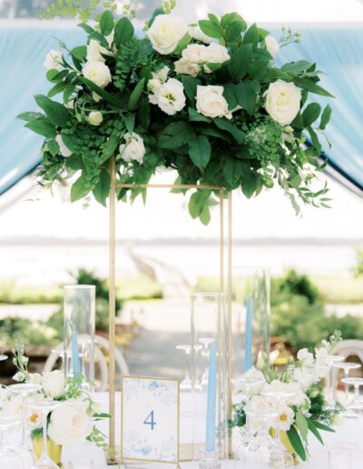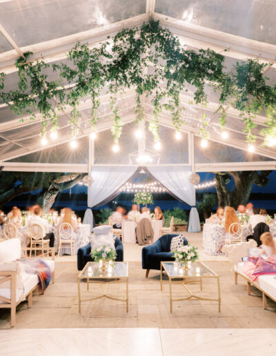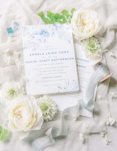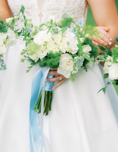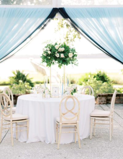 Favorite color of the wedding season is Light blue! Design & Planning by Chelsye at Intrique. The reception looks stunning with the custom fabric treatments throughout the tent. Along with the greenery & lighting focal piece! Angie & Danny wanted a romantic thoughtful wedding. We incorporated soft high petal count blooms along with linear to add texture and depth throughout the decor. Delphinium, tweedia, garden roses, spray rose, lisanthus, ming fern, maidenhair fern, etc.. Lowndes Grove never looked so good if you ask me!