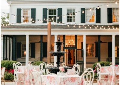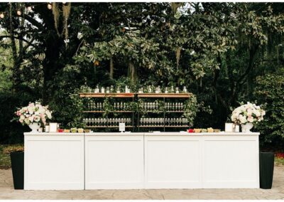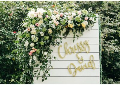 The couple was drawn to having a Charleston wedding, as this was where Chrissy grew up. Chrissy worked closely with her paper designer to have her suite mimic the unique wallpaper within the Legare Waring House, their venue of choice. The wallpaper color scheme was carried on throughout the entirety of the wedding, making the whole event cohesive. The color scheme included bold watercolor floral patterns and soft textures paired together flawlessly. Even the beautiful sleek gown Chrissy wore was the perfect pairing with David’s custom navy tuxedo and velvet smoking slippers.