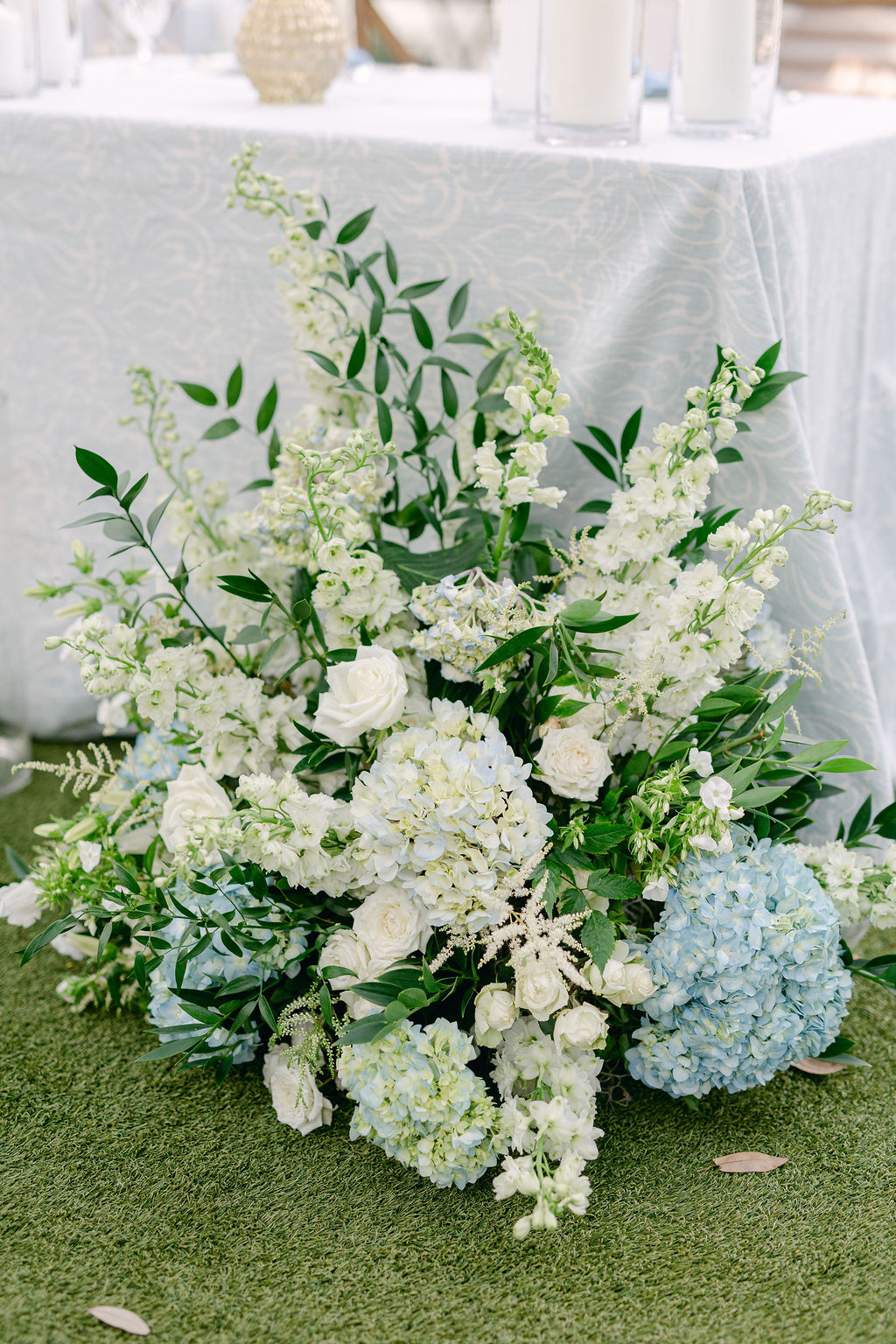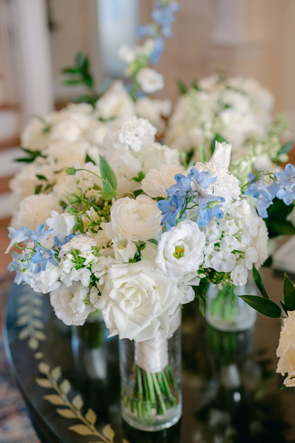 The Admiral’s House by Gayla Harvey | Apr 22, 2026 | ceremony, flower style, published, reception venue | 0 comments Tori’s & David’s classic blue & white florals at The Admiral’s House. Details inspired by Charleston Southern Charm. Flowers hydrangeas, roses, lisanthus, spray roses, campanula, and light blue delphinium. ← PREVIOUS POST